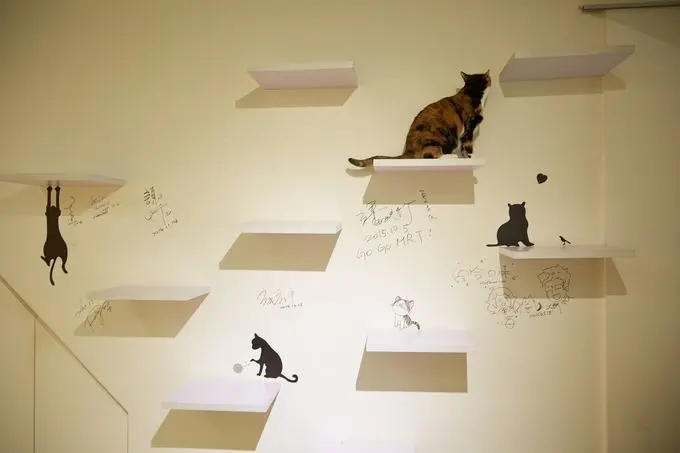 ▲店內特製貓跳台,讓貓咪上下運動。