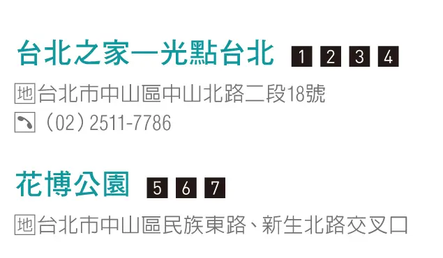 「中山北路是我最喜愛的一條街道。」站在花博公園前指著前方充滿林蔭的大馬路。「你看,花博公園真的是台北市區內難得空曠又舒適的一塊空地了,每當我想要靜一靜的時候就會來這裡,視野遼闊,飛機從頭頂飛過的時候又更美了,待上一會,好像就可以補滿能量。」剛好有一架飛機從我們頭上呼嘯飛過。中山北路可以說是一條擁有豐富歷史又時髦的街道,這條從日據時代至今已跨越近百年的時代之路,至今仍保留不少痕跡。「充滿英國鄉村風情的台北故事館,外觀可以看出當時的繁華;美術館也不時會有不錯的展演;可以到光點台北看一場電影、甚至還有精品店!是不是多元又蓬勃的一條街道!」