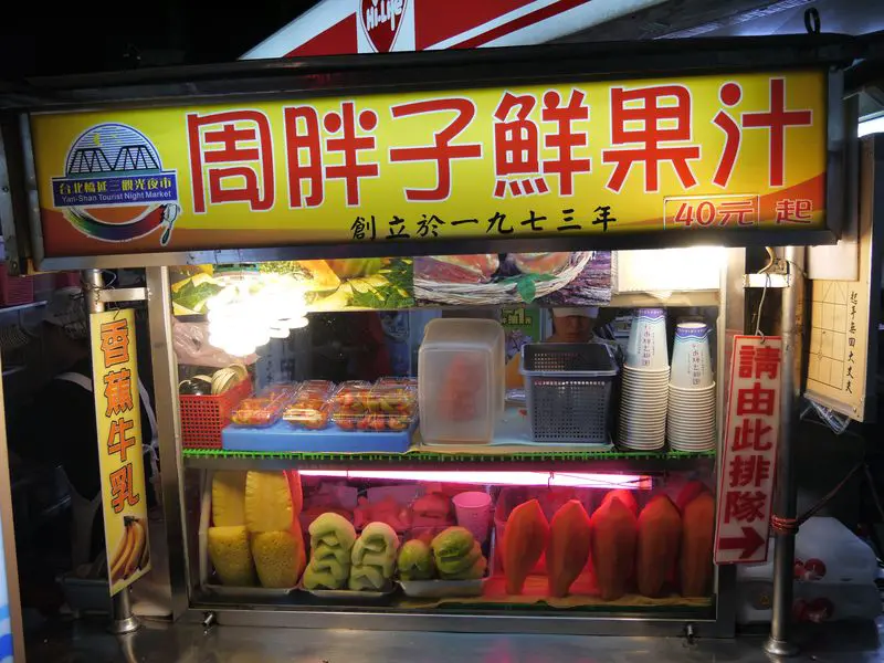 ▲夜市著名排隊店之一,不管是當季水果如草莓牛奶、香蕉牛奶,或是營養蔬果汁像是紅蘿蔔汁,都是人氣商品,老闆還會每天推出特價商品,份量多又便宜,十分超值。