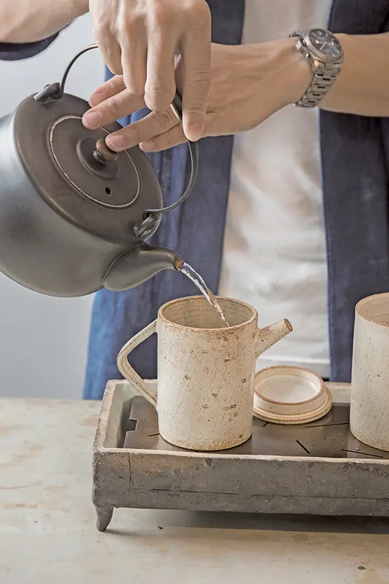 十間茶屋是由Franco和Brenda兩人一起創立的茶葉品牌,Franco家中世代從事茶葉相關事業,身為第五代接班人,有感傳統茶文化逐漸消失,決定以新穎姿態和更多人分享台灣好茶,經過兩年時間籌備,十間茶屋坐落在松菸旁,純白玻璃屋帶給人清新的感受,現有的三位茶師都經過嚴謹的訓練,不只手藝純熟,更樂於與客人分享茶知識,店內精選12支茶葉,以00、05、10代表初、午、暮 三種不同的發酵烘焙程度,沖泡方式則有熱泡、熱沖冰、冷泡及冰滴四種,其中以威士忌瓶裝的冷泡系列非常受歡迎,不只外觀吸引人,使用小口徑的瓶裝更能細細品嚐茶湯的韻味。