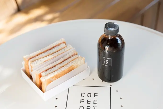 由潮流服飾店DEPARTMENT STORE開設的咖啡廳,以外帶型態為主,隱身在華山裡的小角落。初次相見便被它迷人的開放空間、自然綠意給吸引,極具質感的瓶裝冷萃咖啡很順口,搭配混搭草莓、花生醬的三明治,超幸福感!