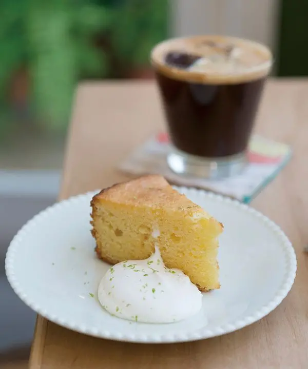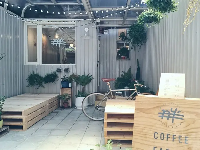 位在永康街中後段靠近金華公園的巷子內、住宅公寓的一樓,隱密而安靜,與其說是貨櫃屋風格,更像是簡約居家設計,以植物、木質元素、抱枕,圍繞著核心的咖啡與甜點,適合看書、工作或者輕聲談天。