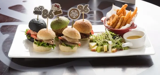 威秀影城與三麗鷗合作推出Hello Kitty Red Carpet美式餐廳,以好萊塢電影為出發點,延伸出紅地毯的概念,並將Hello Kitty打造成電影明星,從門口設置的閃 亮星光大道意象,到店內以膠卷、燈具、海報等融入電影元素的空間,都充滿鮮明的主題性。二樓用餐區更打造一處明星專屬休息室,有梳妝台、直立鏡,夢幻 氛圍成為熱門打卡點。餐點部分,在主廚精心設計之下,萌翻天的Hello Kitty巧妙入菜,不論是純鮮奶製成造型冰磚、咖啡造型拉花,搭配非賣品的特製餐盤,都更加增添美味享受。一樓另闢周邊商品專賣區,隨手將可愛的Hello Kitty帶回家吧!