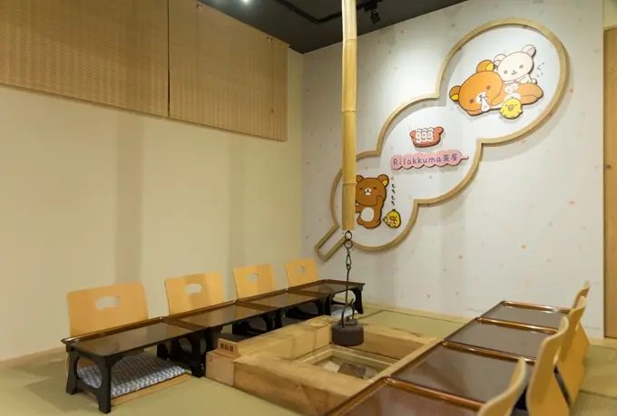 由拉拉熊「茶屋」系列創作圖案發展而成的和風主題餐廳,於中山商圈亮相。穿過日式庭院造景的門口進入店裡,在簡約禪風的空間主軸之下,從牆面壁紙、造型窗框到和式坐墊皆可見拉拉熊巧妙隱身其中。除了一般座位區,店內特別設置二間塌塌米包廂,其中八人包廂打造日式暖爐桌的意象,搭配個人和室矮桌,十分有趣;而融入拉拉熊造型的餐點,讓人直呼可愛捨不得吃,從拉拉熊圖庫挑選再手工打造的陶瓷餐具,極具質感也令人喜愛。