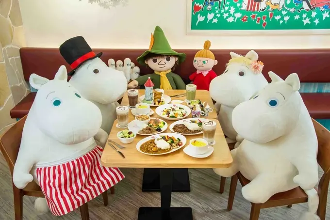 以原著故事「嚕嚕米小屋」作為空間場景設計,走進Moomin café嚕嚕米主題餐廳,就像是走進童話世界裡,讓人驚喜萬分。店內隨處可見嚕嚕米的蹤跡,不但牆面以嚕嚕米原著插畫點綴,用餐座位更貼心規劃,讓你可以和嚕嚕米夥伴們一 起用餐,帶來奇妙無比的餐食體驗!餐點設計也融入可愛角色,另特別分午間、下午茶、晚間三種菜單,甜、鹹食都有,多重美味選擇滿足你的味蕾。緊鄰一旁的專賣店提供各式周邊商品,超可愛模樣讓人愛不釋手。