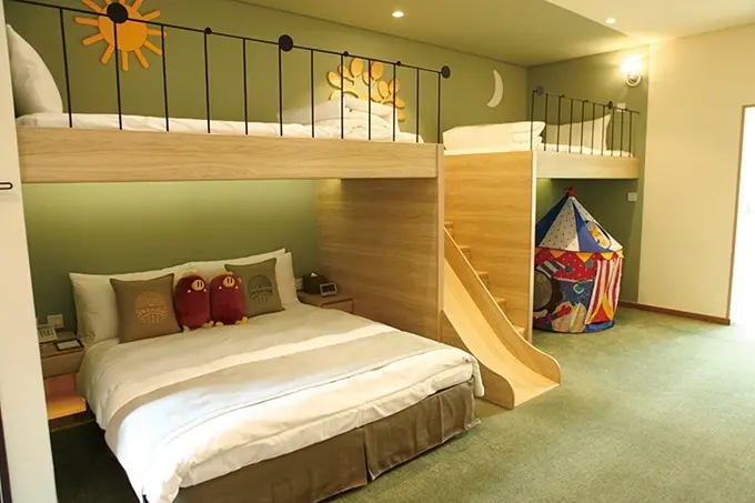 有著阿里山腳下最美飯店美譽的天成文旅—繪日之丘,有著積木般的純白幾何造型外觀,以注重在地文化特色,客製化打造專業飯店為核心。由於飯店就位於前往阿里山的隘口,前往甫開幕的太平雲梯相當方便;針對親子出遊的旅客,這裡還有頂級豪華家庭房可選,房內有攀岩牆、溜滑梯、翹翹板、小帳棚,舒適又好玩!![]()