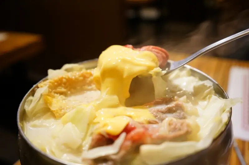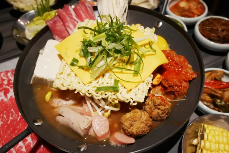 韓國老闆來台開店,主打正宗韓式鍋物,有部隊鍋、人蔘雞、牛骨泡菜湯和清雞湯等鍋底,其中「雙人套餐」是CP值相當高的選擇,部隊鍋食材豐盛多樣,與起司交融在一起,濃郁香氣超誘人。每天熬製且不添加味精的清雞湯,湯頭清爽不油膩,涮片肉質軟嫩的美國牛小排。不僅套餐份量十分澎湃,小菜也是無限量供應,如果吃慣一般韓式料理,不妨品嚐看看道地韓國涮涮鍋。