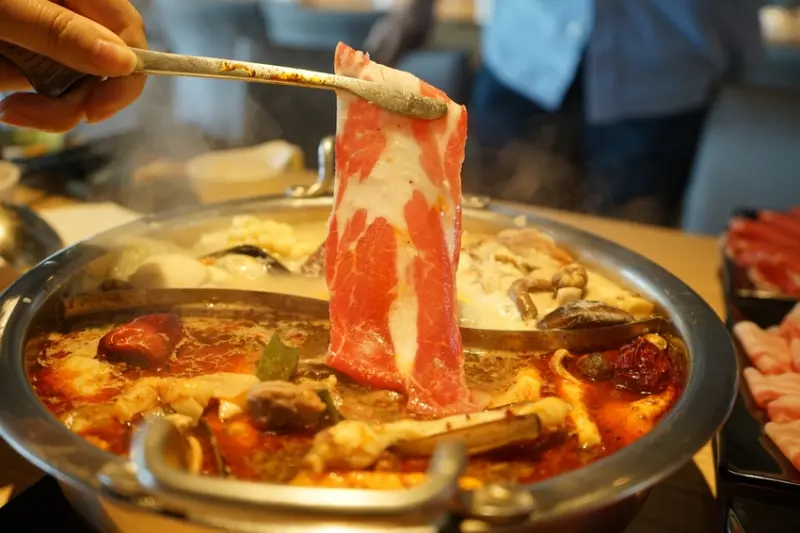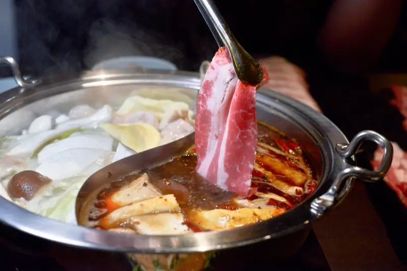 從四川嫁來台灣的老闆娘,將娘家經營的道地川味麻辣火鍋秘方帶來台灣,每天親自炒料的湯頭香麻夠味而不死鹹,鍋底的鴨血滑嫩又帶有Q度,慢火熬煮的菇類雞湯更是一絕,香甜濃郁且不油膩。不惜成本使用的好食材讓人吃得過癮,細緻軟嫩的Prime頂級霜降牛,每片都有一定的厚度,油花漂亮的梅花豬吃得到肉香氣,份量豪華且軟嫩的去骨雞腿排也大推!