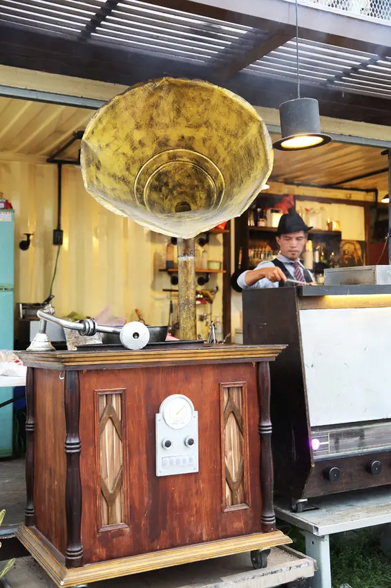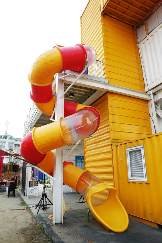 聚落裡的店家與工作室共約20間,當中如黑手理髮師經營的車酷理髮廳,老闆頭戴紳士帽打著啾啾的SwinG BBQ復古留聲機燒烤等店家,不但潮,還潮得超有特色。此外,聚落還規劃兩層樓高的溜滑梯、彩虹隧道,俱是熱門拍照焦點。