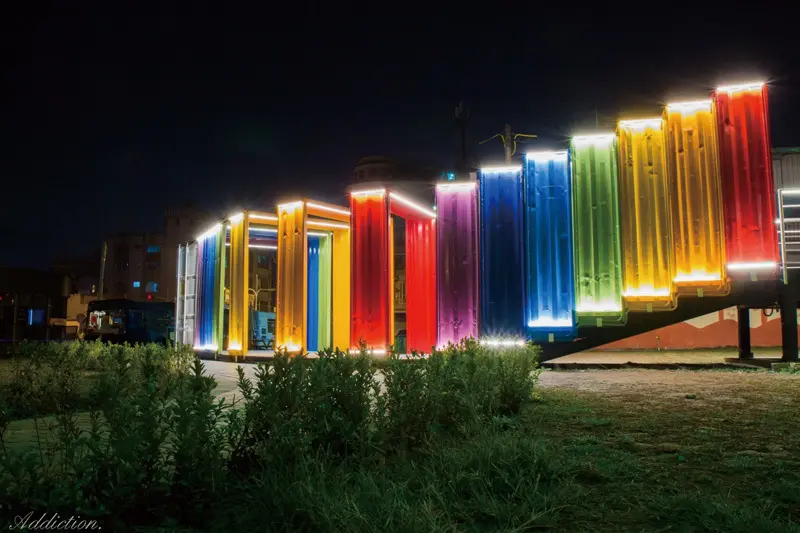座落勝利路、忠孝路交叉口,為在地青年創業實驗場域,有如七彩積木堆疊的貨櫃基地,曾獲國家卓越建設獎最佳規劃設計類特別獎。聚落裡集結文創、美食、咖啡等各類潮店,不定期還推出假日市集、現場表演、活動體驗,現已成為屏東最亮眼的風景。