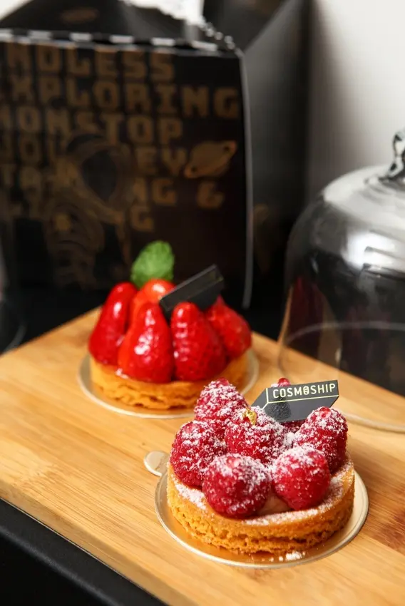 來自法國的藍帶講師級主廚,與合作許久的團隊,悄悄地啟動一場關於甜點的奇幻旅程。目前仍是試營運階段的「Cosmoship 宇宙小艇」,在法式手作烘焙工藝的時空背景下,運用多樣台灣在地食材,以中西合併的無邊界創意,變化出多樣的戚風蛋糕以及塔派系列甜點,如同宇宙般的無邊想像力,除了手工現做必須每日限量供應之外,對於甜食的想像空間卻是完全不設限,在品味之於也同時搭上宇宙小艇邁向冒險、驚喜的航行,而這裡未來也將計劃提供外帶咖啡。