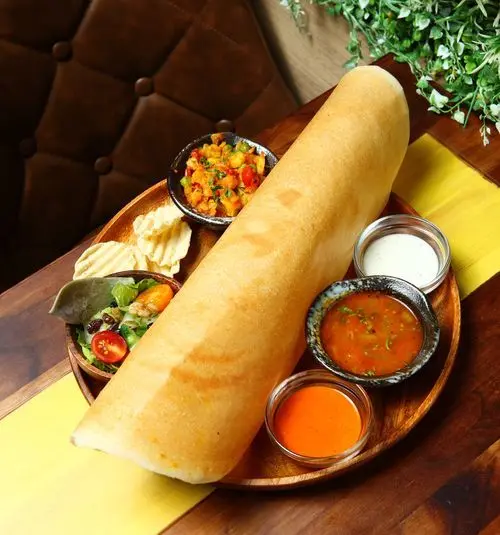 ▲馬鈴薯薄餅320元/台灣少有的南印料理,是印度人從小吃到大的道地美味,將米跟印度白豆泡上一晚,再磨成漿作成的餅皮,搭上椰子醬、酸辣醬提升出不同的香味與口感。