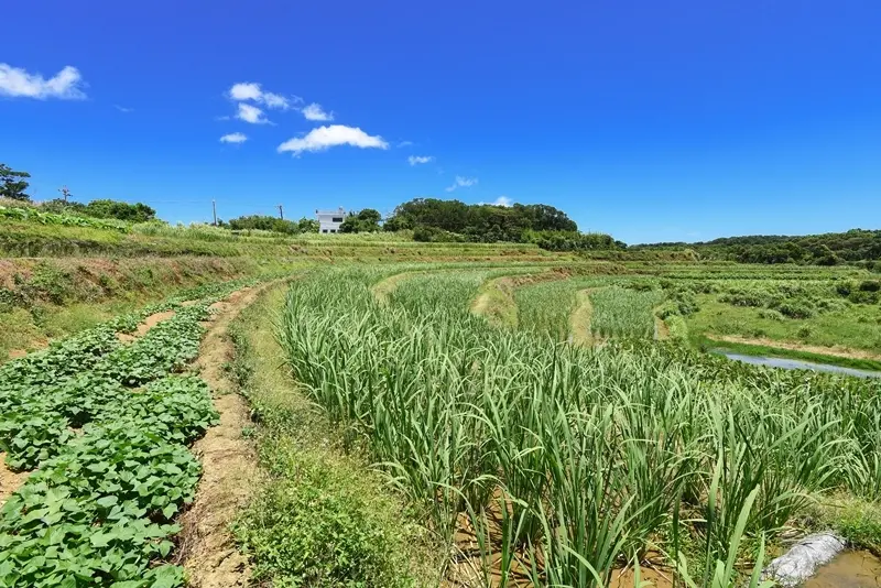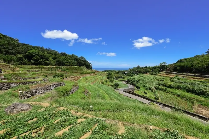 背山面海的三芝地區,於早年開墾時,便往山坡丘陵方向耕耘,經年累月下,成就了綠意盎然的梯田景致。其中最具代表性的橫山梯田,原以種植稻作為主,現已改為花卉、山藥、茭白筍等經濟作物,層層交錯的梯田美景,構築出了幾何圖形般的畫面,無論在豔陽下,或是黃昏時,皆有不同意境,站上梯田高處,面向海的方向眺望,感嘆此處的好山好水。
