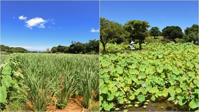原是在地人才知曉的秘境,因神似淡水金山八煙聚落的「水中央」,而讓三芝田心子在網路上爆紅,成為旅人爭相打卡的景點,尤其當藍天白雲倒映在水面上,經微風吹拂的水面激起漣漪的景色,更讓此地獲選為「十大新北之最」。爆紅之前,這裡的濕地景觀已有多時未耕種,而後經過再生計畫種植了蓮花,在好天氣的襯托下,更添一股脫俗感。