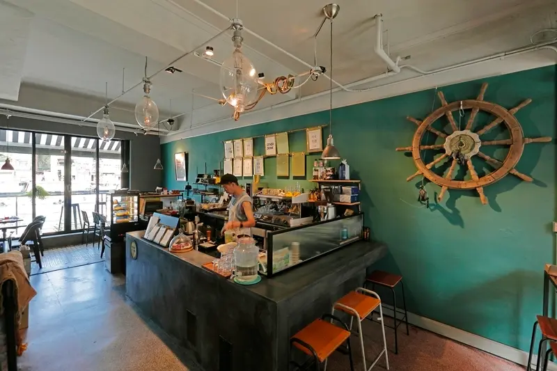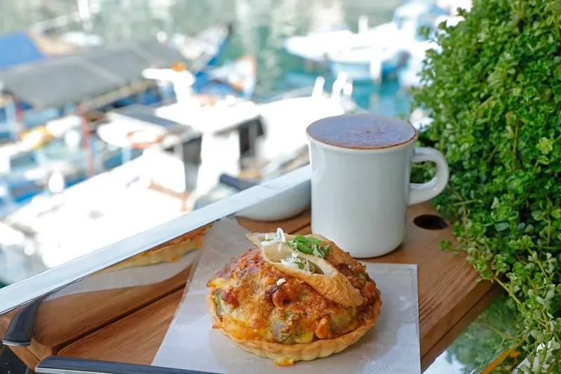 佇立於和平橋上按下快門鍵,在那幅屬於重生後的正濱彩色漁港畫面中,以黑、藍綠色系顯眼地融入其中的個性樓房,便是第一幢上色的圖們咖啡。取名自早年巴賽族對於和平島的稱呼「tuman」,保留老屋元素,並在空間設置多以海港文化為主題,像是入門右側的水手船舵、漁船上的燈飾等,1樓左側設有一處展覽空間,不定時展出關於生活的設計提案。告別和平島的最後一站,或許就該來此感受手作美食與在地浪漫。