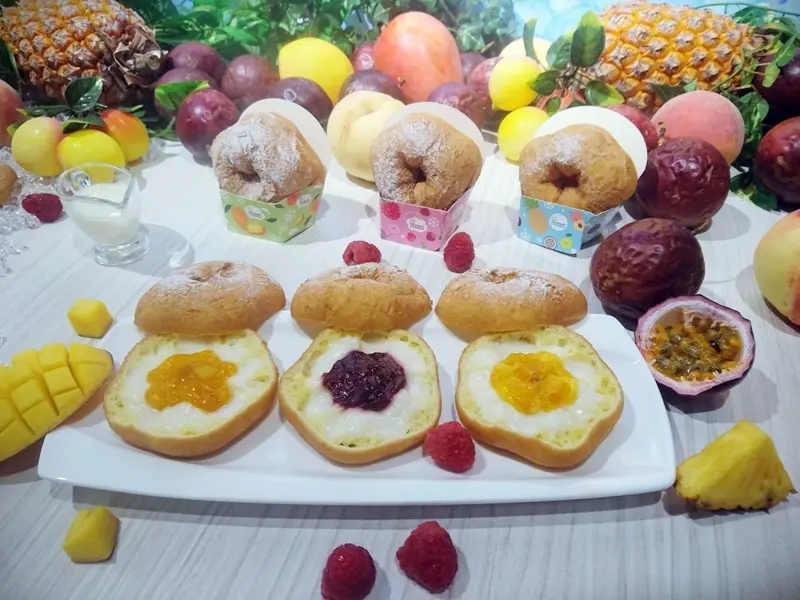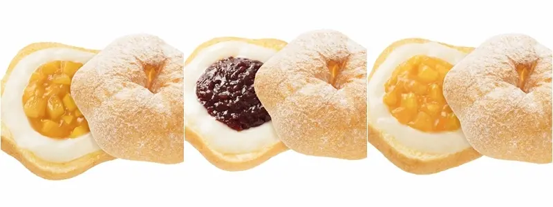 水果優格果芙系列以「輕盈食感」及「清爽酸甜」為主,在圈體及內餡上都大大創新,由日本為夏天量身打造開發出蓬鬆柔軟又帶有彈性的果芙圈體。