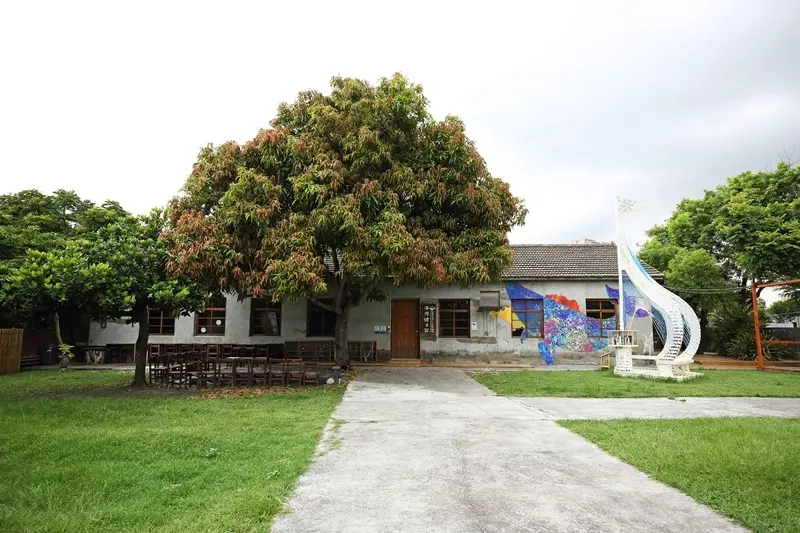 位於清水眷村文化園區稻田中央的眷村空屋,經由藝術家的設計、規劃後,成功搖身一變成為繪本空間,外牆上一片鯨魚彩繪,也是近來很夯的打卡熱點。