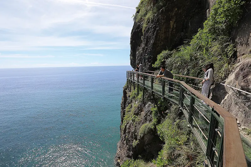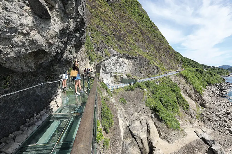 2017年才正式對外開放,建於台11線外的親不知子斷崖上,寬度僅容一人通過的親不知子天空步道,因地處的地勢險峻,「即便親如父子走在其中,都無法彼此照料」而有「親不知子」之名。早年的古道是與廢棄的新磯隧道平行,而在古道荒廢之後,於近年重新打造。全長150公尺,而其中一部分的步道,是採用強化玻璃打造而成,站在玻璃步道之上,可以透視雙腳底下的峭壁與海面,以及海水拍擊岩壁的海景風光,在一面山景、另一面是海景的自然地勢之下,讓想要一睹壯闊美景的旅人,得先準備好膽量,才能踏上這條全台最刺激的天空步道。踏上玻璃步道,面山臨海的絕佳景致就在眼前展開,奇妙體驗相當值得旅人前來探訪。