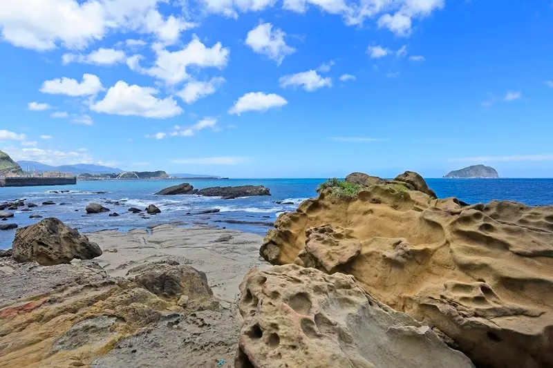 位於人氣景點「忘憂谷」下方,沿著堤防便可一探大坪海岸的絕美全貌。原是歷經多年海浪衝擊,所形成的典型海蝕平台,因此可見多樣的海蝕洞、豆腐岩等奇景,退潮時沿著步道向前行,一旁潮間帶的自然生態映入眼簾,到了春天,石頭還將覆蓋上整片綠海藻,因而被譽為「綠寶石祕境」。當清澈無比的海水映照著藍天白雲,眺望遠處則可見基隆嶼及往返船隻交織而成的海上美景,聆聽浪花輕拍的陣陣濤聲,同時感受大自然帶來的美好。