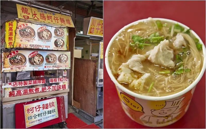 來到小吃聚集的市場中,走進滿足重口味饕客的龍口蚵仔麵線,在大腸頭、綜合、肉與花枝蚵仔麵線4種口味選擇中,點上一碗滿滿配料的麵線,融入老闆自豪的獨家「菜脯辣椒醬」,迷人的風味瞬間於口中散開,而在此短短的品味時光中,也能瞬間理解龍口蚵仔麵線廣受歡迎的原因。