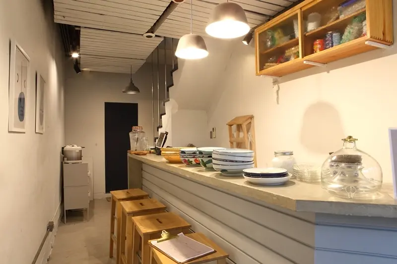 小巧空間中瀰漫著道地的香港家常味,從主食、甜點到飲品,皆是依循記憶中的家鄉味創作。沿著狹窄階梯而上,撇見用餐區旁的工作桌與展售區,原來2人同時也是手工藝、皮件設計師,透過手作的溫度,從飲食到日常配件,如同店名所傳遞「在香港、在台灣」的陪伴理念。