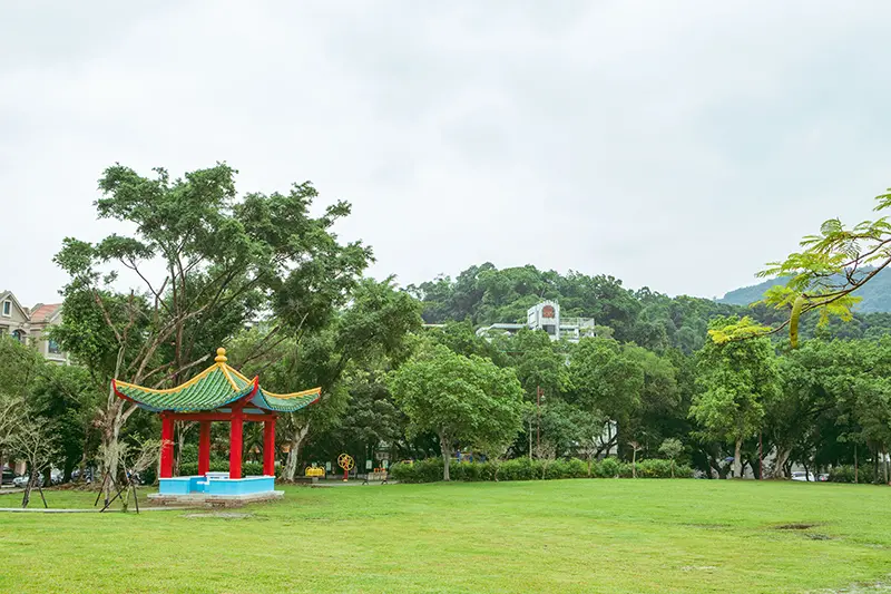 園區內亦打造多樣化設施,包含露天音樂座、觀景亭、環山步道等,現部分設施整修中,將陸續於明年初完工。