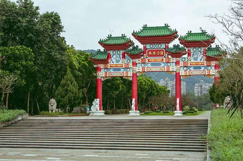 由大型中式牌樓入口處進入,放眼所及皆是無盡延伸的綠意,清新宜人的自然美景使南港公園成為絕佳踏青、散步的景點。園區佔地廣闊,不僅擁有豐富的綠意景觀,同時也吸引鳥類棲息,因而成為生態攝影據點。