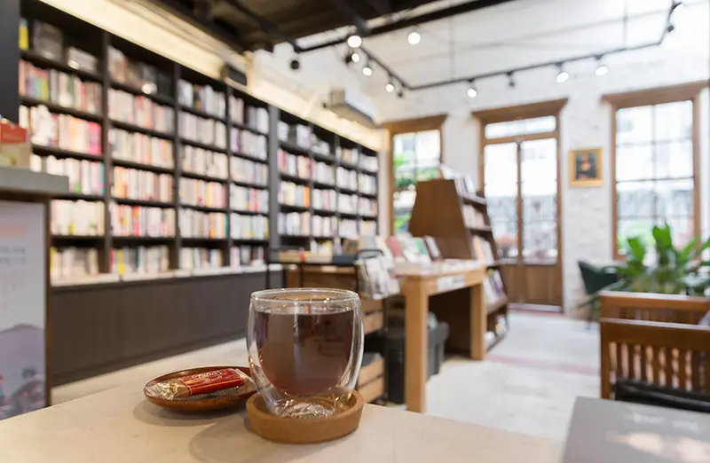 內除了提供個性選書,也與「Aura微光咖啡」合作提供咖啡飲品,選用以世界知名音樂、哲學為命名的咖啡豆,極具藝術氣息。