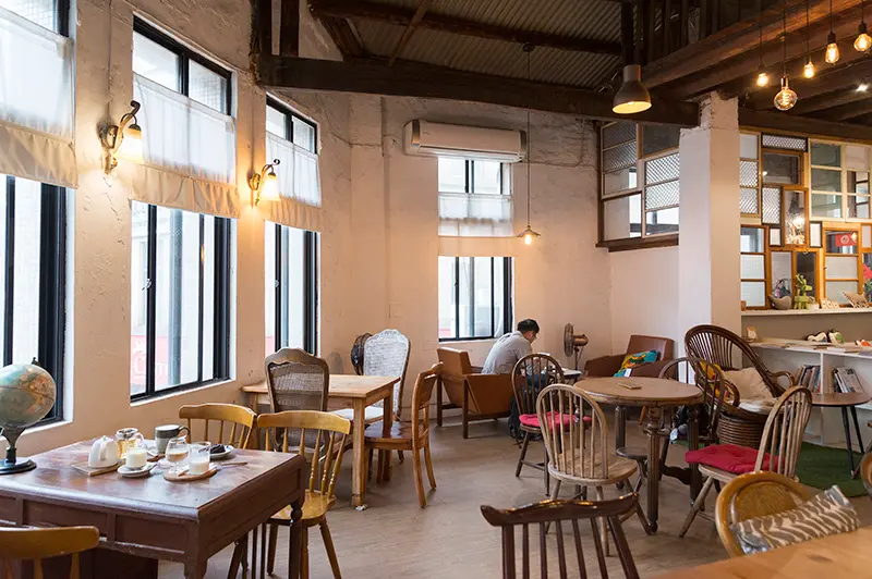 一直都很喜歡咖啡的守倉,在咖啡課程與另一半相遇之後,便決定一起開設咖啡館,在他們的藍圖裡,除了咖啡、甜點,一定還要結合原味茶與泰國風情元素。隨後2人因緣際會租下這間老房子,在延續老屋原有的調性之外,放入溫莎椅、老式木桌與燈具,一點一滴打造出極具氣質的老台灣味。