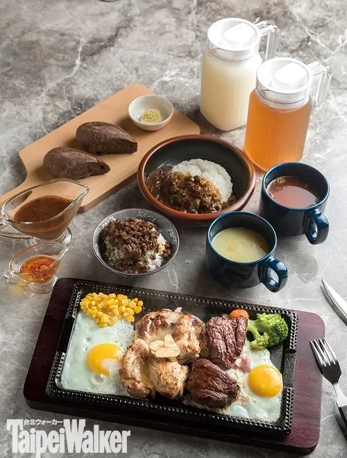 ▲大肌肌套餐(200g)680元/專為健身族群設計的雙拼大份量套餐,包含紐西蘭菲力、以及先煎後烤的去皮無骨雞腿排,再搭配2顆太陽蛋,補足滿滿的蛋白質!套餐另附多種配餐,除了和牛滷肉飯或咖哩飯2選1,湯品則提供玉米濃湯或羅宋湯2選1,以及麵包及飲品,最後,再以充滿古早味氣息的木桶豆花劃下完美句點。醬汁方面,除了黑胡椒醬、蘑菇醬,店內也推出特製的麻辣醬、日式醬油,讓客人創造喜愛的吃法。