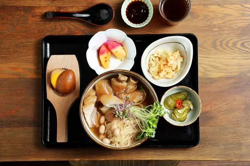 ▲絕代双腳麵320元/將黑毛豬腳滷到熟透,雙筷一下即分離,一旁附上港點、自製小菜、甜食、茶飲,套餐模式也提升整體質感。