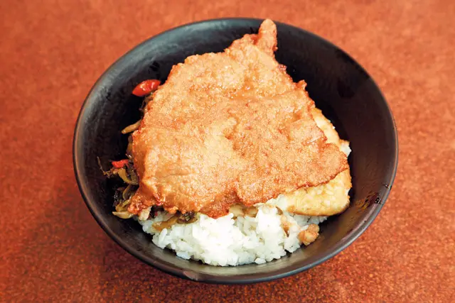 馬路益是家經營了30多年的老店,店內的燒肉是傳統的台式做法,先將燒肉滷到入味,再將外皮炸的酥脆,配上簡單的配菜,就是很飽足的一品了。