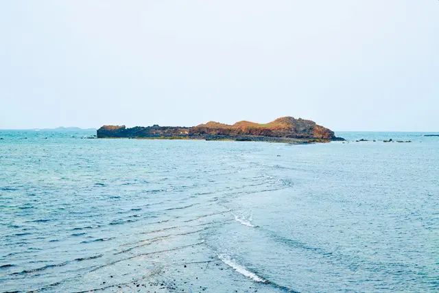 ▲赤壁山與赤嶼島間原本是一片汪洋,耐心等待就可以看到奇特的景觀了!