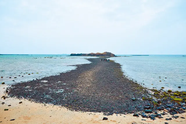 ▲海水退去後出現了步道,可以散步到赤嶼島,但要算準時間以免漲潮後回不來喔!