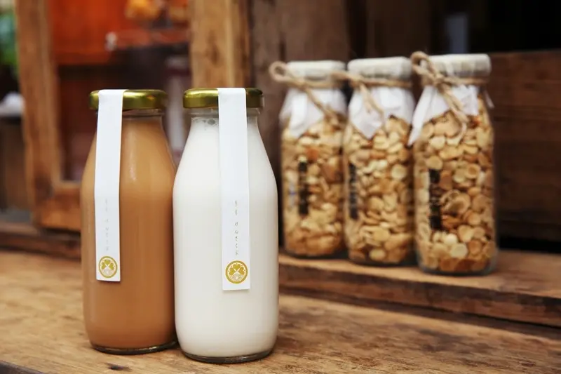 原本從事日本茶道、而後赴香港工作的老闆,回到台灣後,為了給孩子喝健康的飲品,開始自製杏仁茶,同時也送給街坊鄰居喝,沒想到大獲好評,便開始在府中街上,以木製的小攤車,自己烘焙杏仁果實,賣起以最原始的杏仁所自製的「原作杏仁茶」。如同店名般,所以食材與製作過程,都是來自最純粹的原味。