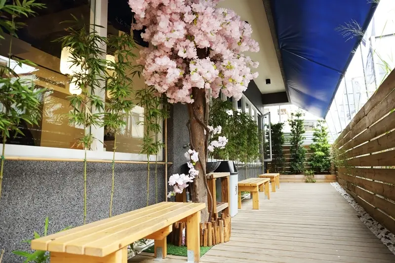府中街上1家被櫻花綠意圍繞的日式小店,典雅中帶點浪漫氛圍的門面,瞬間吸引旅人趨前拍照,而推開木門,裡頭正是日式抹茶專賣店。