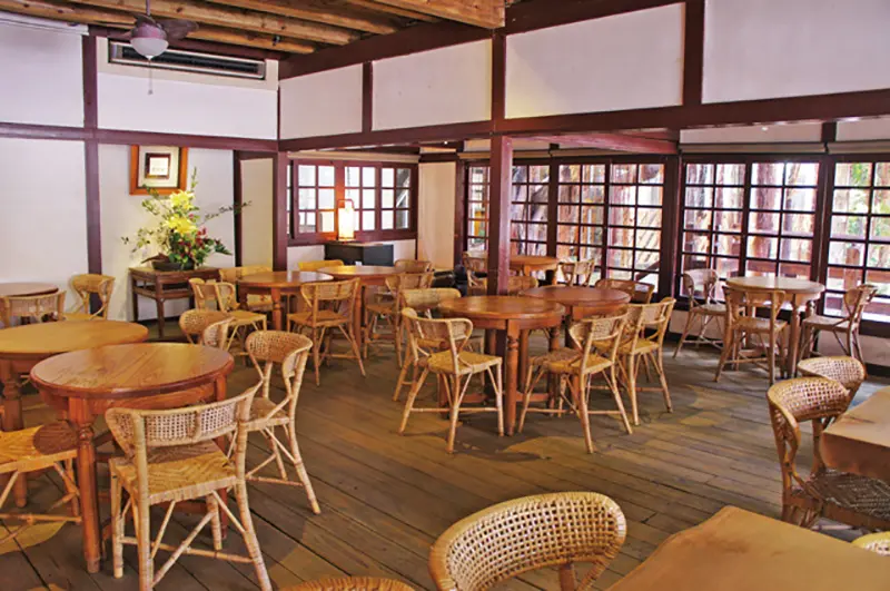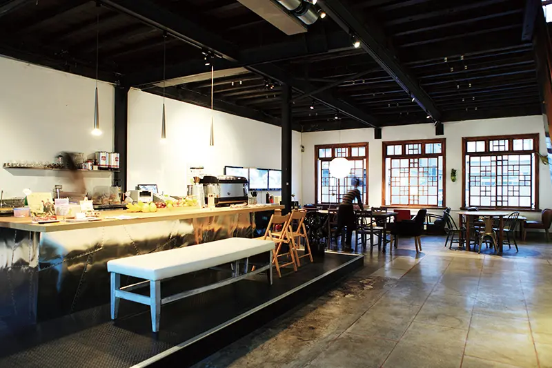 由日人柳下勇三在1963年建造的日式木屋,推開拉門入眼的寬闊空間由木地板與木桌藤椅組成,一旁還有大片格窗,從屋內望出去可見屋外大樹與光影錯落的景象。![]()