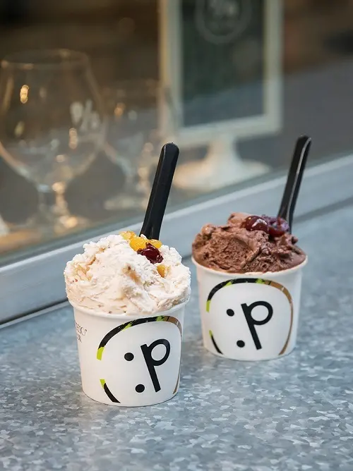 「綠皮開心果」是台南知名的義式冰淇淋專門店,2018年2月店主人將店內的酒類冰品結合精釀啤酒,打造成熟大人版的二店-畢氏酒精。