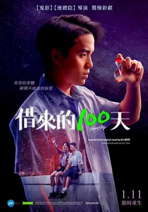 泰國年度奇幻懸疑鉅作《借來的100天》由經典恐怖片《鬼影》導演帕德潘王般執導,《模犯生》痞帥富二代阿派提拉東蘇帕龐皮尤主演。1個遊蕩人世的靈魂,意外獲得重生的機會,借屍還魂住進1位泰國高中生小旻(提拉東蘇帕龐皮尤 飾)的身體。新生活不如表面看起來輕鬆,試著融入新家庭、新學校的過程中,也遇見讓人心跳加速的學伴小派(雀普蘭阿里卡 飾)。