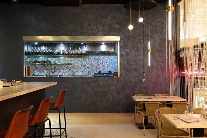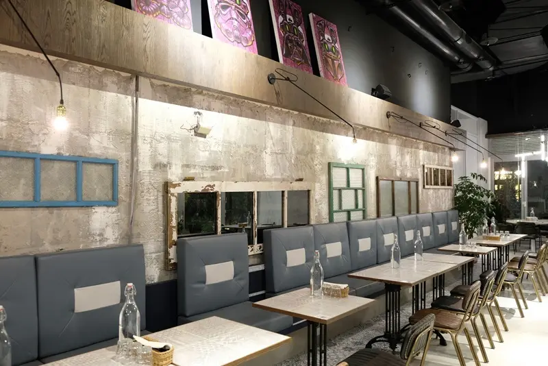 位於大直ATT 4 Recharge一樓的棧酒食吧,整體空間瀰漫時尚氣息,除了以原始裸露牆面、搭配手感傢飾、畫作,呈現裸裝質感的Loft風格,時髦L型酒吧、花磚鋪設的地板等設計巧思,也為店內空間增添美好氛圍。