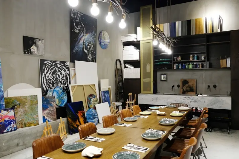 ▲畫室風包廂,瀰漫濃濃藝術氣息。