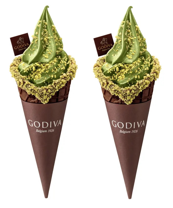 GODIVA 2019年抹茶霜淇淋的雙重口感、多重驚喜,來自於主廚別出心裁的設計!精心添加抹茶碎元素,層層堆疊在黑巧克力味脆桶邊緣,恣意地於抹茶味霜淇淋上點綴,讓抹茶的多重滋味,不只是霜淇淋在舌尖留下的甘醇,也有抹茶碎在口齒間帶來的酥脆層次感受!GODIVA為黑巧克力迷也貼心獻上「抹茶黑巧克力霜淇淋」,讓抹茶和黑巧克力完美融於一口,兩種享受一次捕獲!