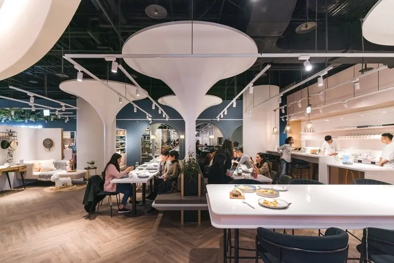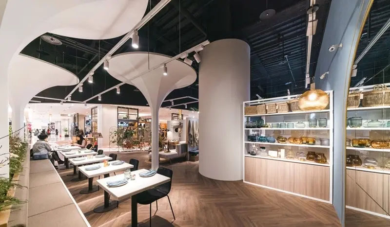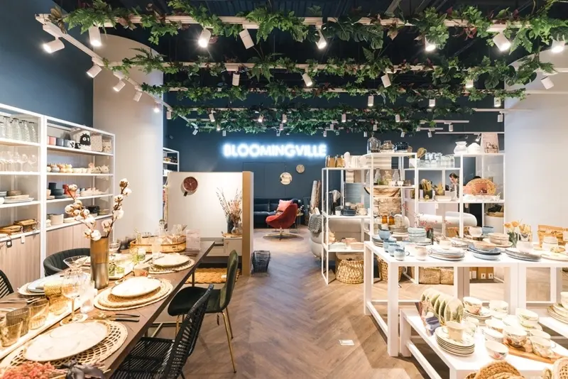 美食饗宴過後,當然不能錯過一旁來自丹麥的大型居家品牌 Bloomingville,於微風南山開設的全球第一家旗艦概念店,以最原汁原味的北歐家居美學,於灰色調的藍、粉、白空間中,打造出具現代風格的愜意氛圍。