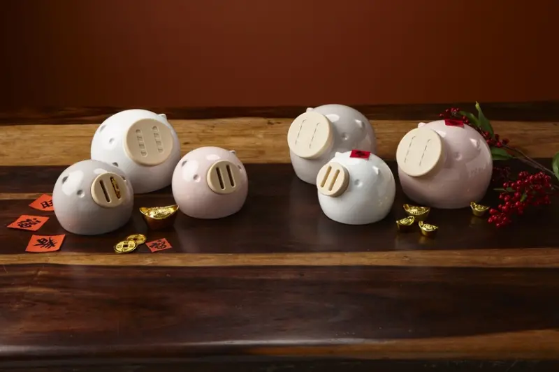 除了各式年貨伴手禮,誠品生活也同步推薦豬年開運設計好物,信義店JEKCA推薦灰粉色小豬仔積木,過年在家DIY打造應景裝飾;MERCI Design吸睛的迷你紅豬凳,是居家開運傢飾品首選;武昌店少女最愛的GRACE GIFT推出玩具總動員粉色火腿豬懶人鞋,Q萌討喜;新板店USERWATS小豬夜燈,造型可愛超療癒。1/16-3/5消費滿6,000、12,000元,即可兌換誠品生活專屬滿額贈禮「賺飽飽撲滿」及「呷飽飽糖果罐」,錢財滾滾來。