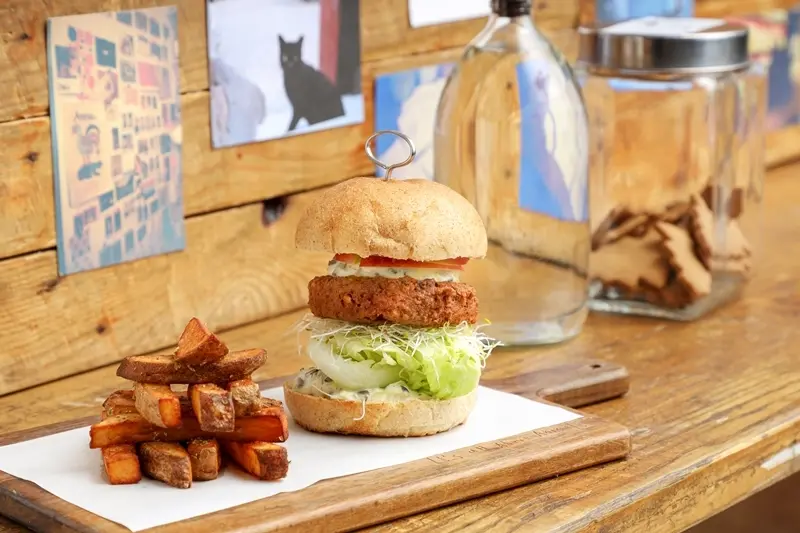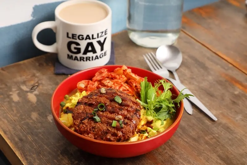 走進店裡,自牆上橫幅到桌上小擺設,清楚傳達著主理人薏雯的理念,從先前的搭伙計畫開始,將友善環境的食材,料理出一道道與大夥共享的家常菜,而今則是透過這所空間,以手工製作的漢堡、咖哩飯,以及在地啤酒推廣動物權與婚姻平權。![]()