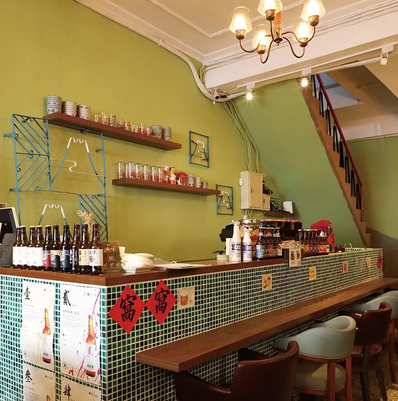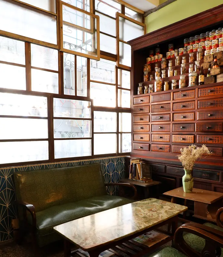 來自香港的Kevin,來台工作多年,喜歡上大稻埕的懷舊氣息,與兼具創意力的街區氛圍,決定在台式老宅中打造復古的餐食空間,將老屋特有的生活美學與香港茶餐廳結合。而喜歡收集老件的Kevin,也融入自三代中藥房購得大型藥櫃、覓尋許久終於在台南收集到的鐵花窗,當不一般的老件映入眼簾,也可見其用心,在有點熟悉的粵語旋律中,彷彿連結著台港兩地時空。