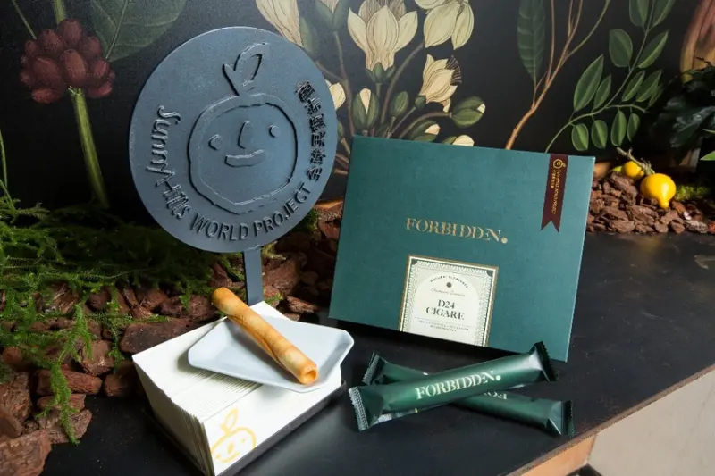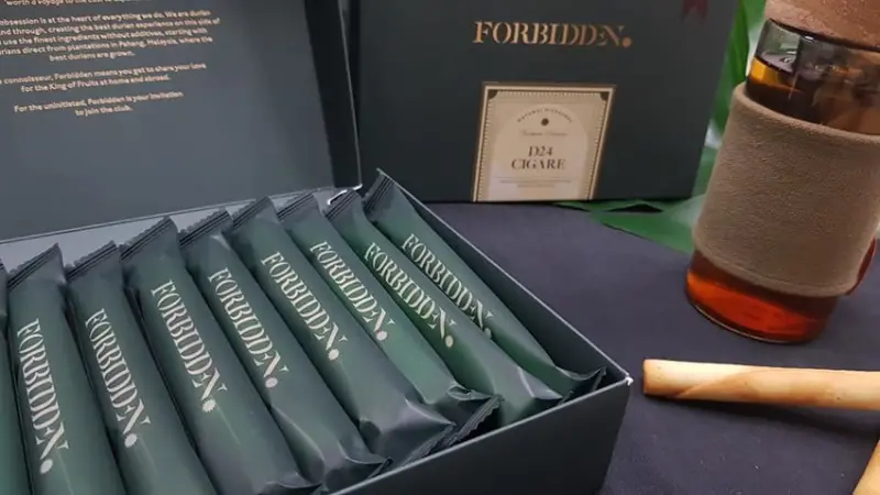 FORBIDDEN 首發商品為「D24榴槤蛋捲」,精選馬來西亞特色品種D24榴槤,又稱蘇丹王榴槤,清新且具奶香,結合日式雪茄蛋捲的做法,一口咬下,甜而不膩,酥脆爽口,不只是榴槤愛好者的精緻下午茶點,同時也是首次嘗試榴槤朋友的最佳選擇。自2/20(三)起,在台北民生社區門市、南投三合院門市及官網限定限量上市,榴槤愛好者或想嚐鮮的消費者千萬別錯過!
