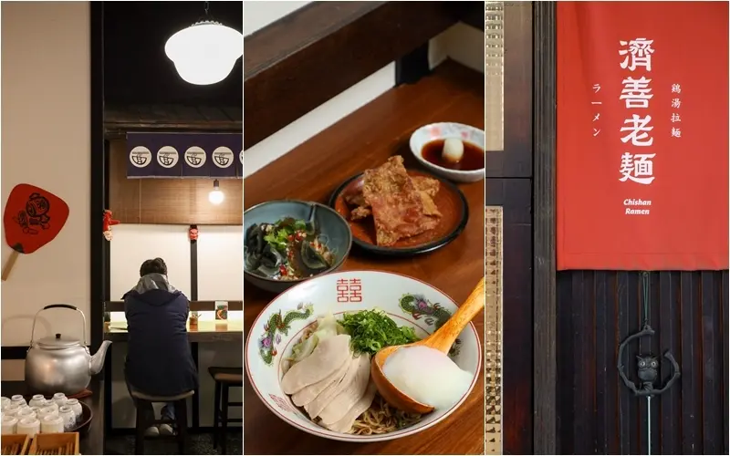 隱身萬華車站附近巷弄,是繼老宅居酒屋老貳樓、小南門附近的重熙老麵後的最新力作,主打淡麗系雞湯麵,自雞肉、雞湯、青菜、叉燒等食材,到柚子胡椒、蘿蔔泥、辣椒、自製水果酒等佐料,皆費時研發自製而成,並在口感上打造出在地味,不只主打麵食深深打中饕客味蕾,連搭配小食都是解膩好選擇。取名濟善老麵,也希望在印象中老舊的艋舺城區,為街頭弱勢提供一份暖意。