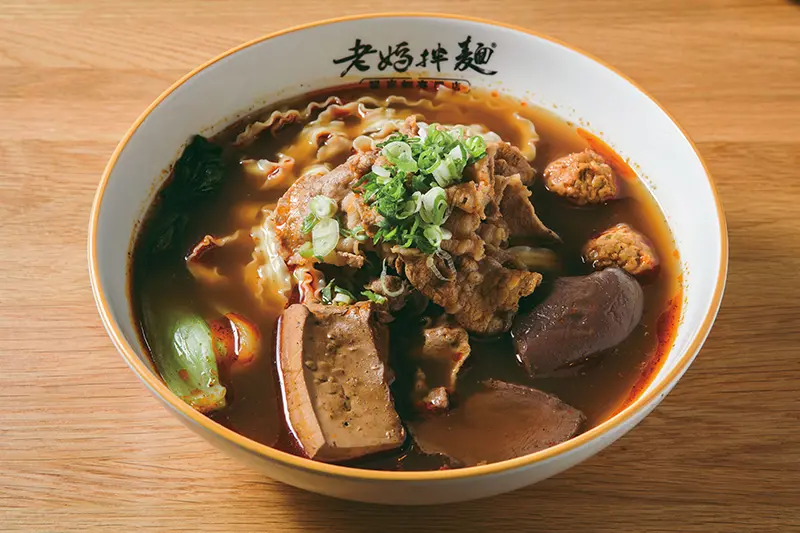 於網購界擁有高人氣的老媽拌麵,在經營品牌5年之後推出虛實整合體驗的概念店。店內使用台南關廟的純日曬麵條,具耐煮、口感Q彈的特色,搭配使用台灣新鮮食材製成的醬料,在地風味連觀光客也愛。店家在原有的快煮包之外,特別推出花雕雞、和牛炸醬等升級版拌麵,完整體現乾拌麵的千變萬化。除了招牌乾拌麵,另推出川味老火慢燉牛肉麵系列,湯頭香醇溫潤。