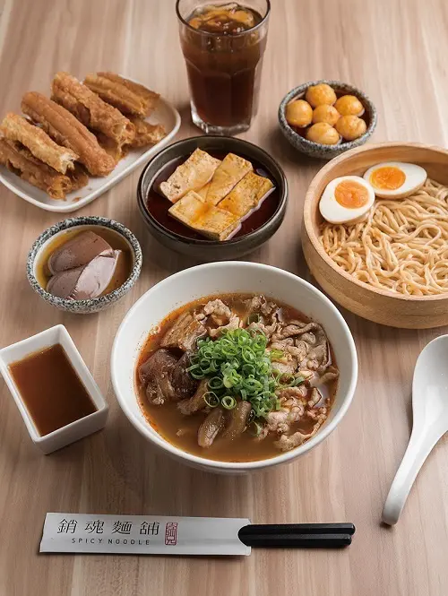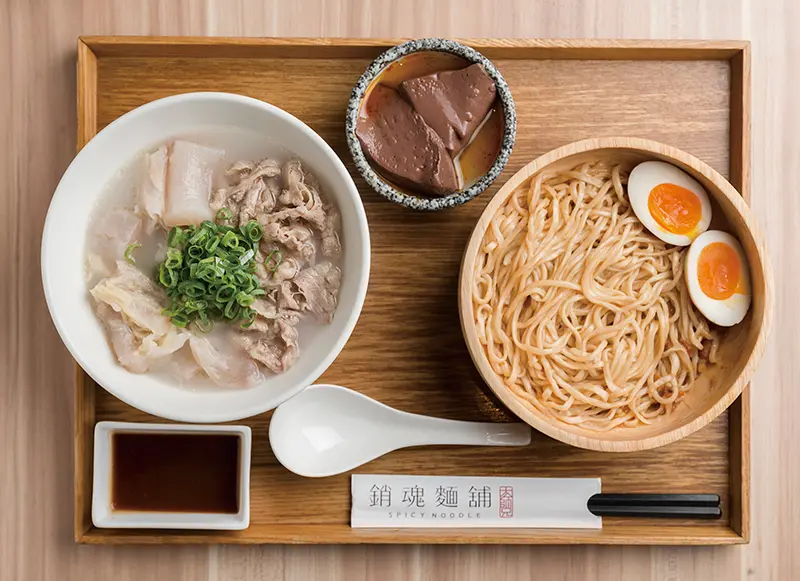 原本是大師兄麻辣鍋物搭配贈送的「銷魂乾拌麵」,由於意外獲客人好評,隨後成為麵舖主角,至今已開設3家店舖。店內以銷魂麵搭配自家鍋物湯頭,推出麻辣、清燉牛肉湯套餐,簡單的菜單設計搭配清爽空間,要讓大家從點餐、用餐到空間享受都輕鬆無負擔。